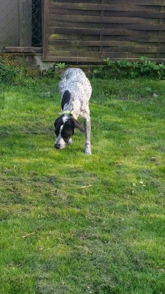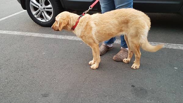 geht gut an der Leine, fährt gut im Auto mit.