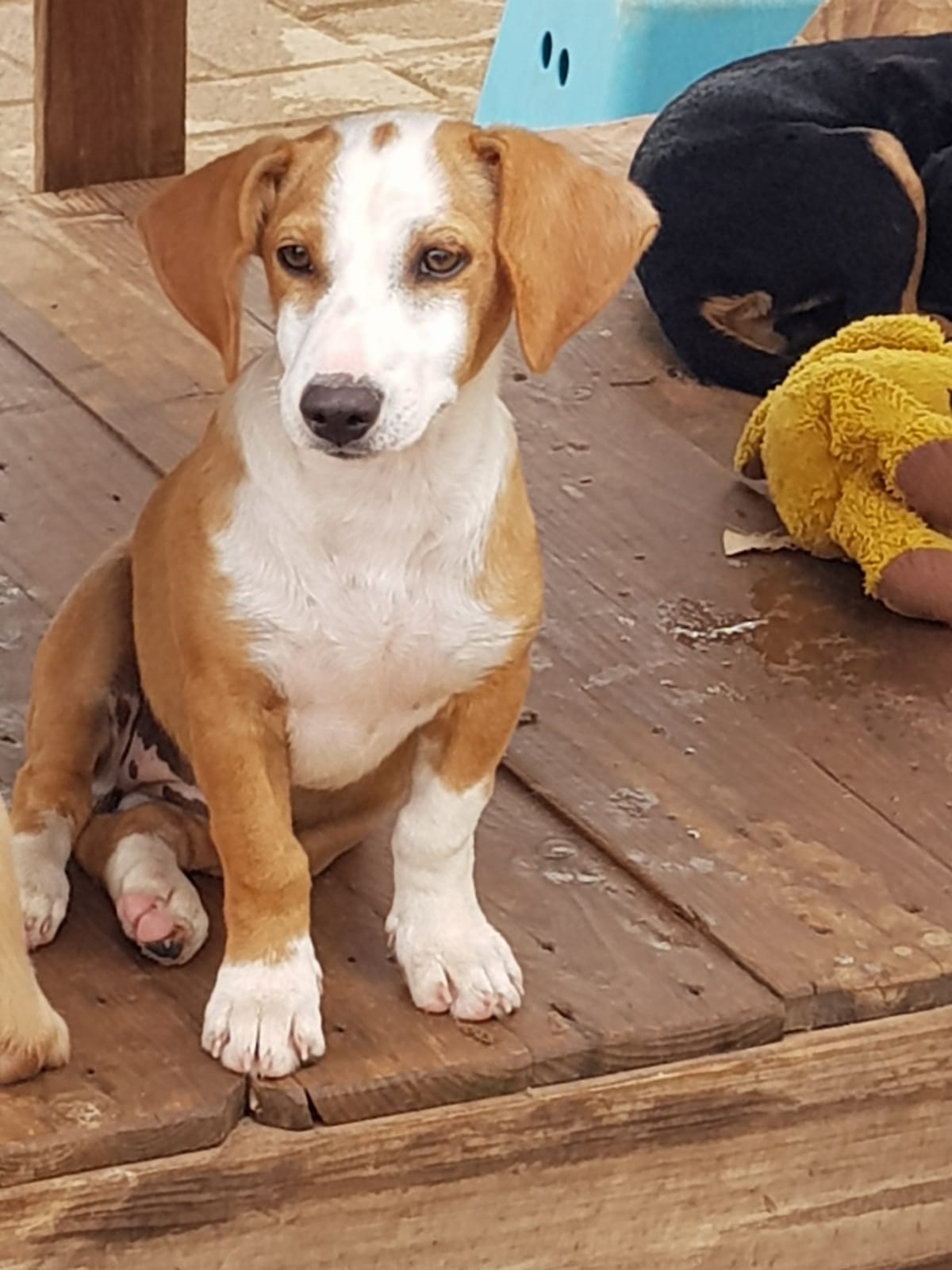 Sie spielt sehr gerne, und fordert hierbei ihre Pflegeeltern auf mitzumachen, indem sie sie bespielt. Danach muss sie aber erst mal wieder ruhen - ist schon anstrengend, so ein junges Hundeleben. An der Leine geht sie bereits super, an der Stubenreinheit wird konsequent gearbeitet. Honey ist allen gegenüber völlig unvoreingenommen - sie verträgt sich mit den anderen Hunden auf der Pflegestelle, sie hat kein Problem mit Katzen und sie mag Kinder.