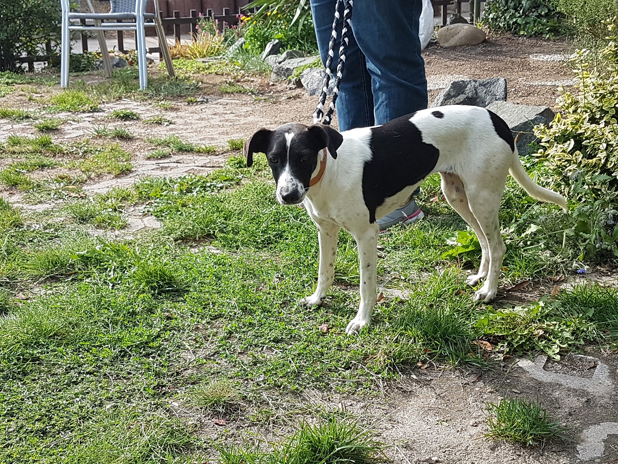Kiara ist eine Mischlingshündin, wurde am 15.08.2015 geboren und ist 52cm groß.Kiara hat sich wirklich wunderbar entwickelt! Ja, sie ist noch eine sehr schüchterne und in manchen Situationen ängstliche Hündin - aber kein Vergleich zu dem, wie sie war, als sie ankam. Sie ist schon sehr aufgetaut und zeigt immer öfter, dass ihr das Leben viel Spaß macht.Sie geht sehr gerne spazieren, zeigt aber einen gewissen Jagdtrieb. Dieser ist aber ganz gut kontrollierbar, hieran sollte allerdings weiter gearbeitet werden.Kinder sind ihr nicht ganz geheuer, allerdings zeigt sie keinerlei Agressionen ihnen gegenüber.Ältere Kinder, die verstehen, dass Kiara kein Kuscheltier ist und die in der Lage sind ihr Raum zu geben, wären sicherlich kein Problem.Kiara spielt im Garten sehr gerne und wirkt fröhlich und aufgeweckt.Alleine bleiben macht sie sehr gut und kleinere Strecken fährt sie im Auto gelassen mit.Kiara schmust auch für ihr Leben gerne, wenn sie Vertrauen gefasst hat. Alles in Allem, ist sie eine wunderbare Hündin, die "einfach nur" Zeit und Geduld braucht, um ankommen zu können. Sie ist geimpft, gechipt, entwurmt und kastriert.