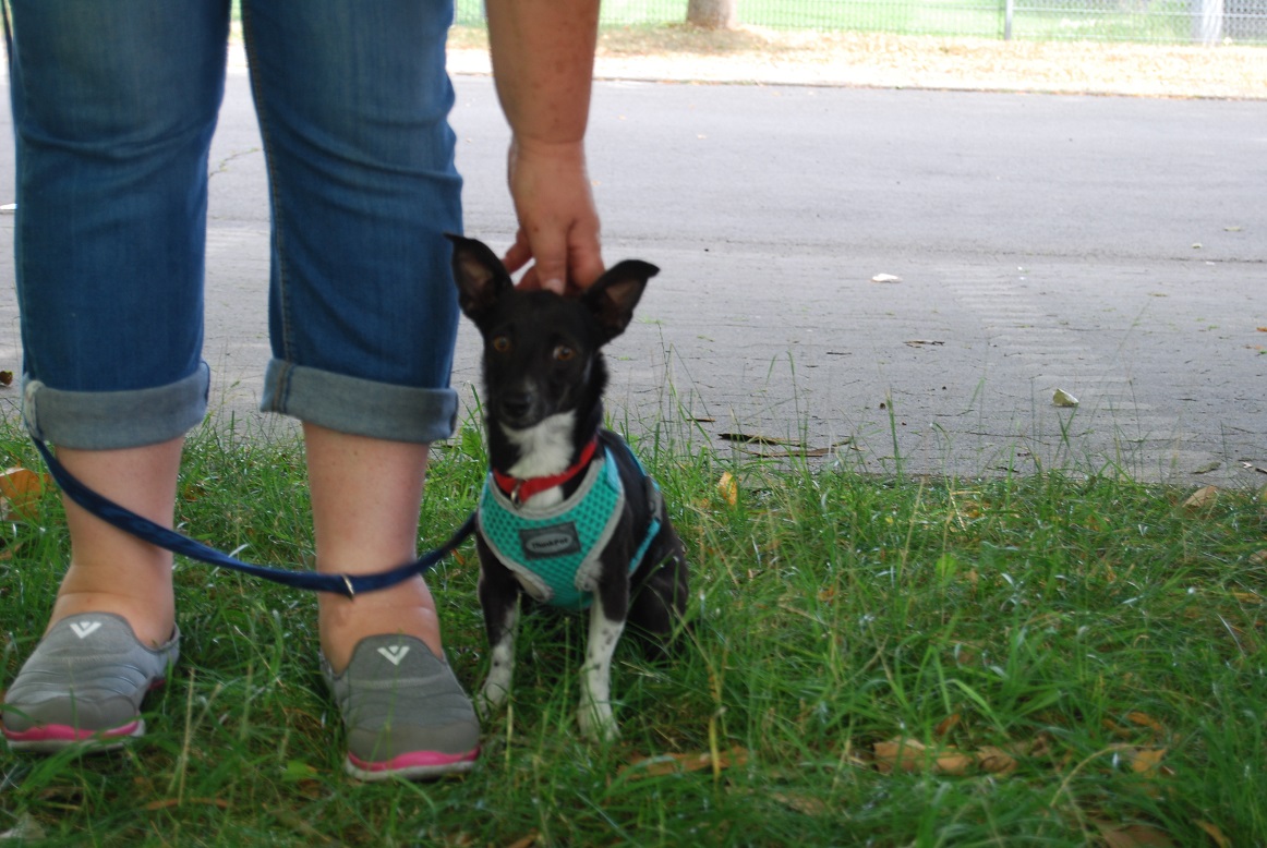 Sie geht gut an der Leine und fährt auch gut im Auto mit.