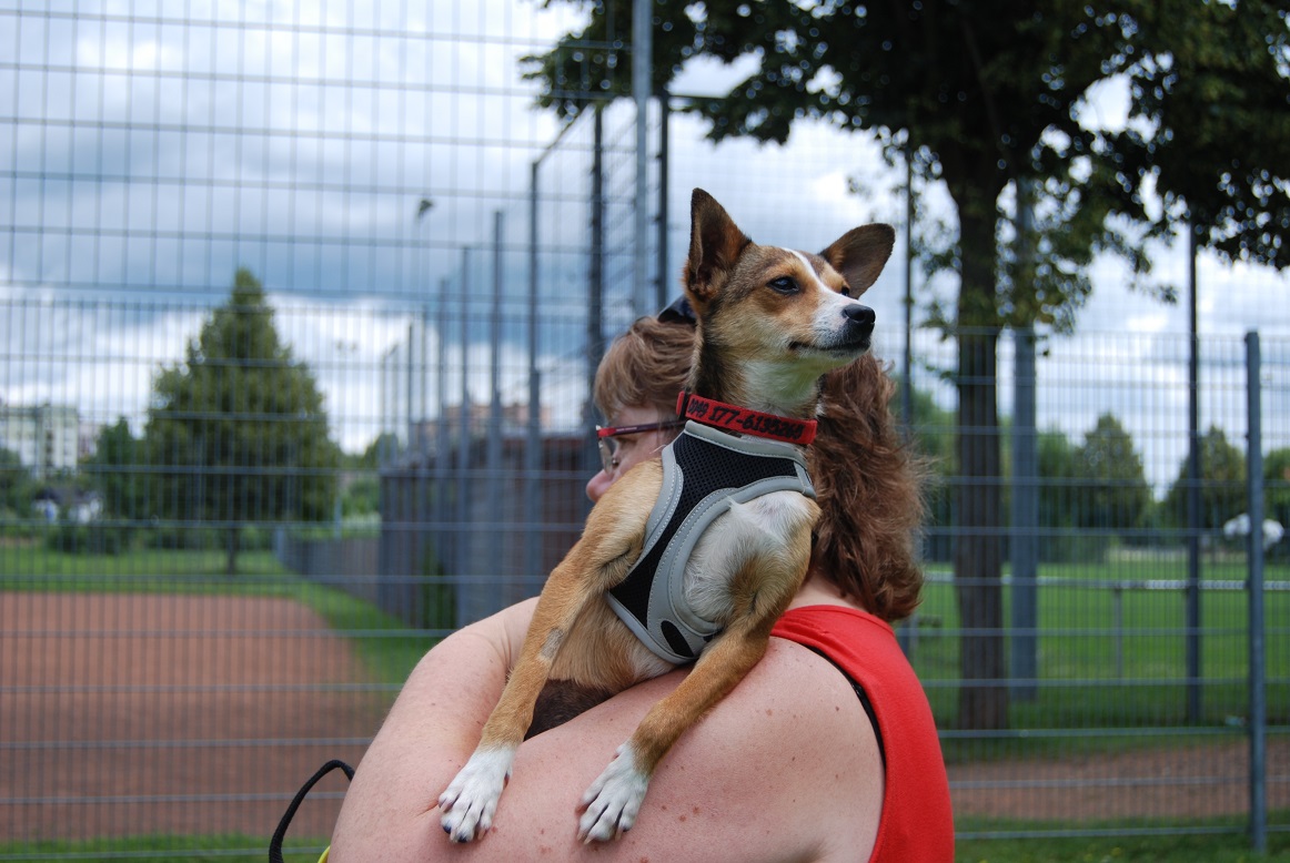 Freya ist total verspielt und es wäre wirklich toll, wenn sich Menschen finden, die gerne mit ihrem Hund spielen, gerne auch mal etwas wilder - denn sie kann beim spielen eine wilde Hummel werden. Genauso genießt Freya aber auch augiebige Streicheleinheiten. An der Leine muss mit Freya noch geübt werden. Sie läuft gut an der Leine, möchte aber gerne ihren Sturkopf durchsetzen, wenn sie denkt, dass es in der anderen Richtung interessanter ist. Mit Leckerlis kann man sie dann aber gut in die gewünschte Richtung führen. Sie möchte auch gerne zu jedem Menschen, und am liebsten mit ihnen spielen. Gestattet man ihr das nicht, bellt sie ihren Unmut.