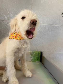 Die Hundekumpels wurden immer mehr und mehr. Die Menschen sagen das ich von einem "Vermehrer" komme. Liebe Tierschützer haben mich und noch andere von meinen Kumpels dort weg geholt und uns in einer Station aufgenommen. Dort wurden wir alle gebadet, gebürstet und betreut. Das war wirklich toll. Nun sind wir aber soweit für ein neues Zuhause. Was das genau heißt weiß ich noch nicht aber die Menschen hier sagen sie würden ein tolles Zuhause für uns suchen wo es nur nette Menschen gibt die uns lieb haben und die für uns Sorgen und mit uns Gassi gehen und alles das machen was ein Hund so braucht.