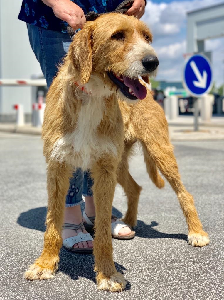 geht gut an der Leine, fährt gut im Auto mit. kommt aus einem Animal Hording